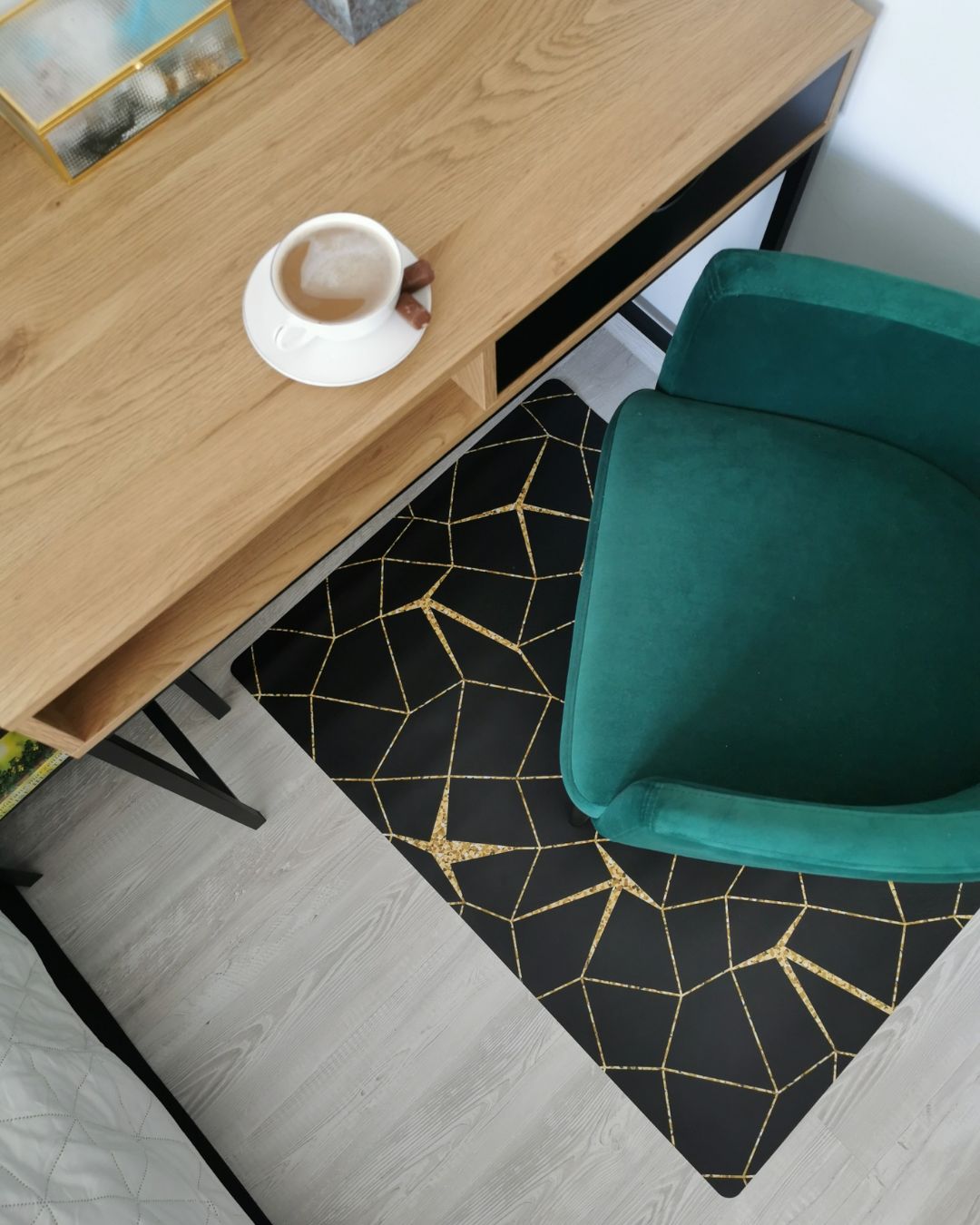 VEILIGE BETALINGEN De stoelmat is een unieke oplossing voor de kantoor. Vloeren floors krassen en vernielen zeer snel wanneer ze worden blootgesteld aan mechanische krachten bij het verplaatsen van plaats naar plaats. Het is een goed idee om de delicate vloer in dit gebied te beschermen en extra bescherming te geven. De Mótif vloerbeschermer Goud en zwart mozaïek zal een uitstekend alternatief zijn voor een traditioneel tapijt, dat niet goed werkt in een allergiekamer. Dankzij het haarloos zullen stof en vuil zich minder gemakkelijk op het oppervlak afzetten.